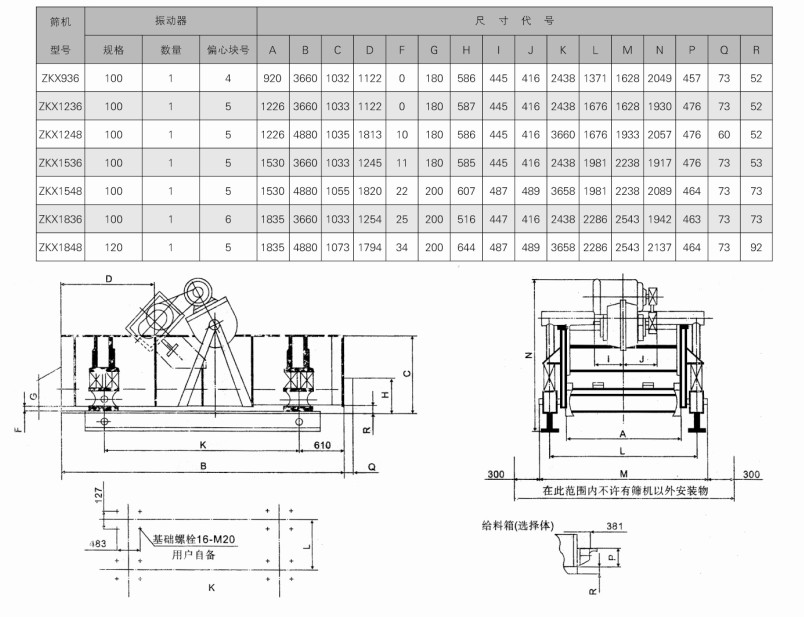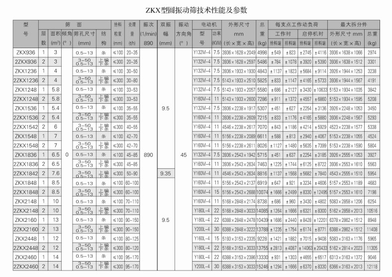 | 類型 | 型號 | 生產率 (t/h) | 給料粒度 (mm) | 雙振幅 (mm) | 振動頻率 (次/分) | 供電電壓(V) | 電流(A) | 有功功率 (KW) | 重量 (kg) | ||